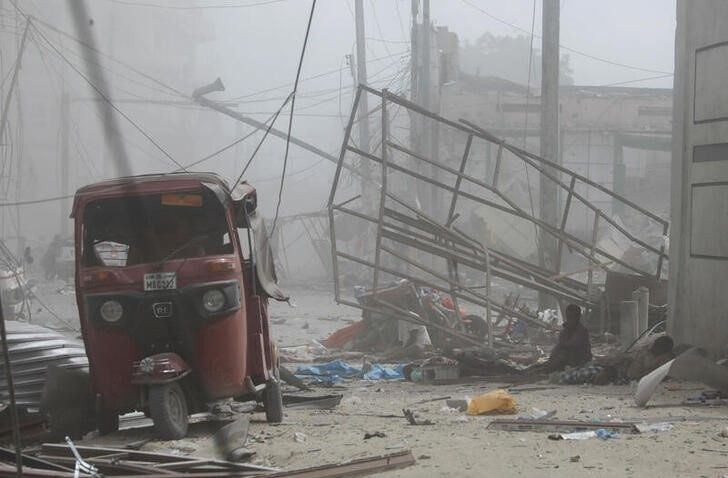 Mogadishu’s K5 intersection is normally teeming with people buying and selling everything from food, clothing and water to foreign currency and khat, a mild narcotic leaf, but it was quiet on Sunday, when emergency workers were still cleaning blood from the streets and buildings.