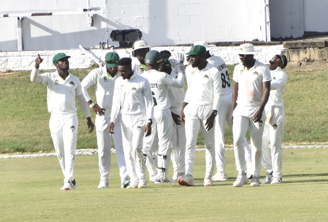 Over in Warner Park, home team the Leeward Islands Hurricanes were bowled out for 137 by the West Indies Academy. Jeremiah Louis played a patient innings, top-scoring with 45 off 122 deliveries, while Terrance Warde was the next top-scorer with 28. Joshua James’ pace was too much for the Hurricanes as he picked up 3/11 from 7 overs, which included 3 maidens. Ashmead Nedd had the next best bowling figures for the Academy with 2/3 from 10.1 overs, with 7 maidens. In their reply, West Indies Academy closed Day 1 on 60/2. Rashawn Worrell (13) and Kadeem Alleyne (2) were the batsmen out. Mbeki Joseph 30 not out and Ackeem Auguste 15 not out saw their team to the close of play. Jeremiah Louis 1/12 and Colin Archibald 1/3 picked up the two Academy wickets to fall.