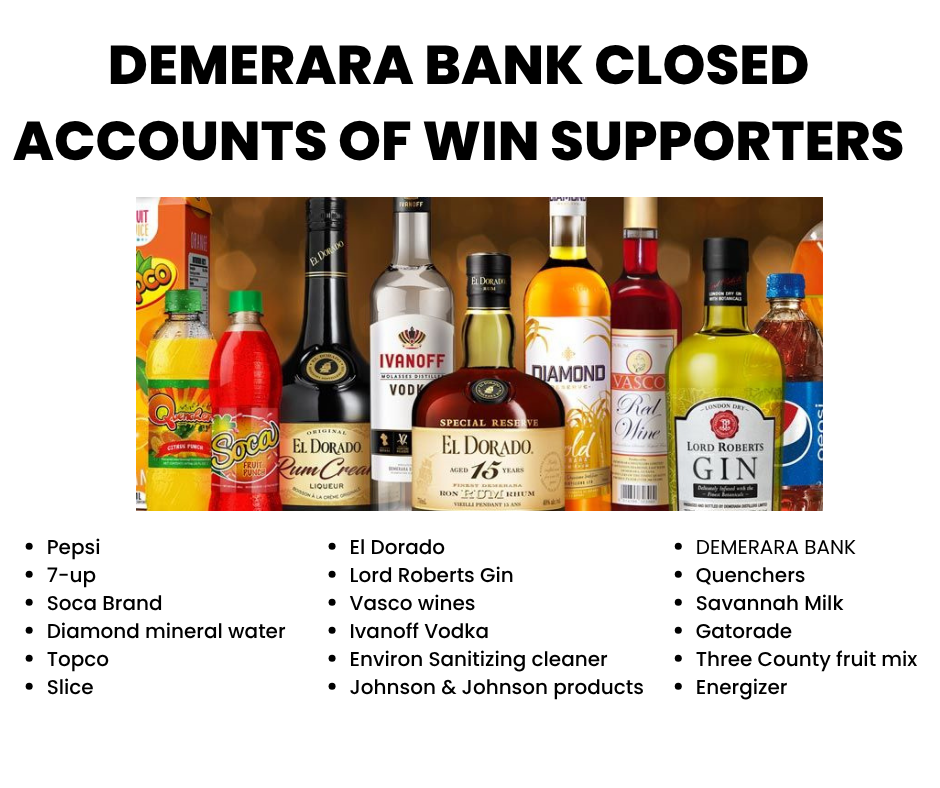Will WIN’s leadership exercise their right to call for a full boycott of Demerara Bank and any businesses or brands associated with it? It would be a remarkable response, putting immediate pressure on the product portfolio of Demerara Distillers Limited (DDL). A call to action of this magnitude would pose a serious threat to the sales and public image of DDL’s widely distributed brands, which include Pepsi, 7-Up, Gatorade, Energizer, Johnson & Johnson products, Topco juices, Diamond mineral water, El Dorado rums, Ivanoff Vodka, Lord Roberts Gin, Soca soft drinks, Quenchers, Vasco wines, Savannah Milk, Three County fruit mix, Slice fruit drinks, and Environ Sanitizers. These brands now risk becoming collateral damage in a growing political backlash, should WIN supporters mobilize against what some call a campaign of economic victimization.