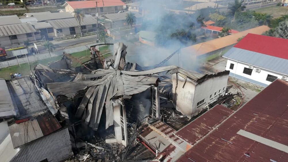 The remains of the July 31, 2025 fire at the Guyana Trades Union Congress/Critchlow Labour College