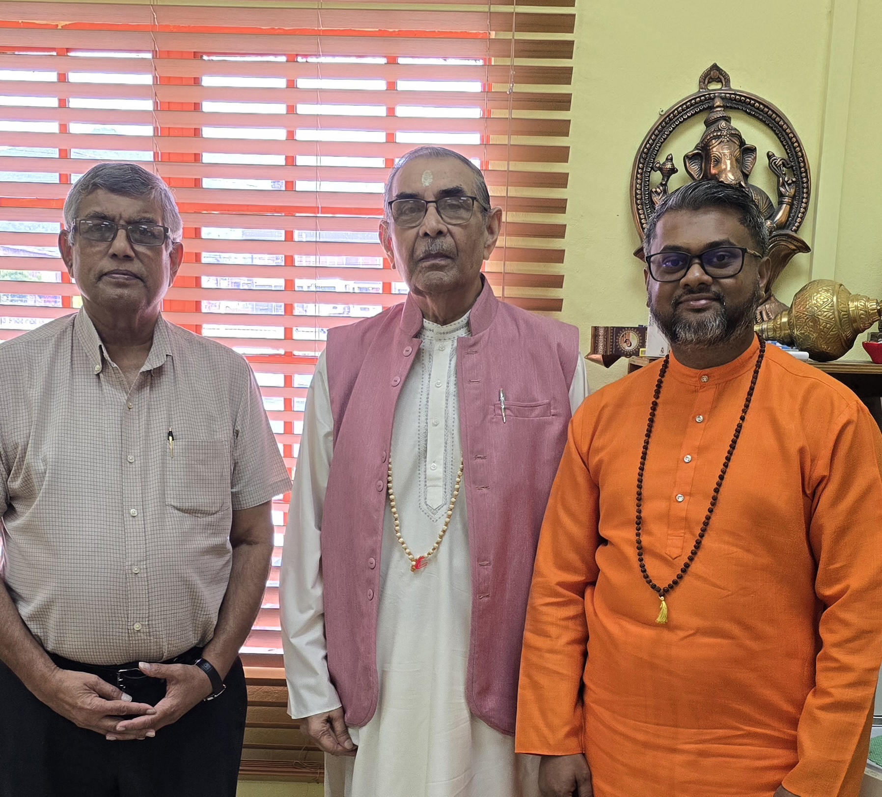 In a move aimed at strengthening Hindu solidarity and religious growth across the Caribbean, Pandit Ubraj Narine, Religious Secretary and Priest in Charge of the Guyana Sanatan Dharma Maha Sabha (GSDMS), recently held discussions with Dharmacharya Pt. Dr. Rampersad Parasram and Secretary General Vijay Maharaj of the Sanatan Dharma Maha Sabha Trinidad and Tobago (SDMS).