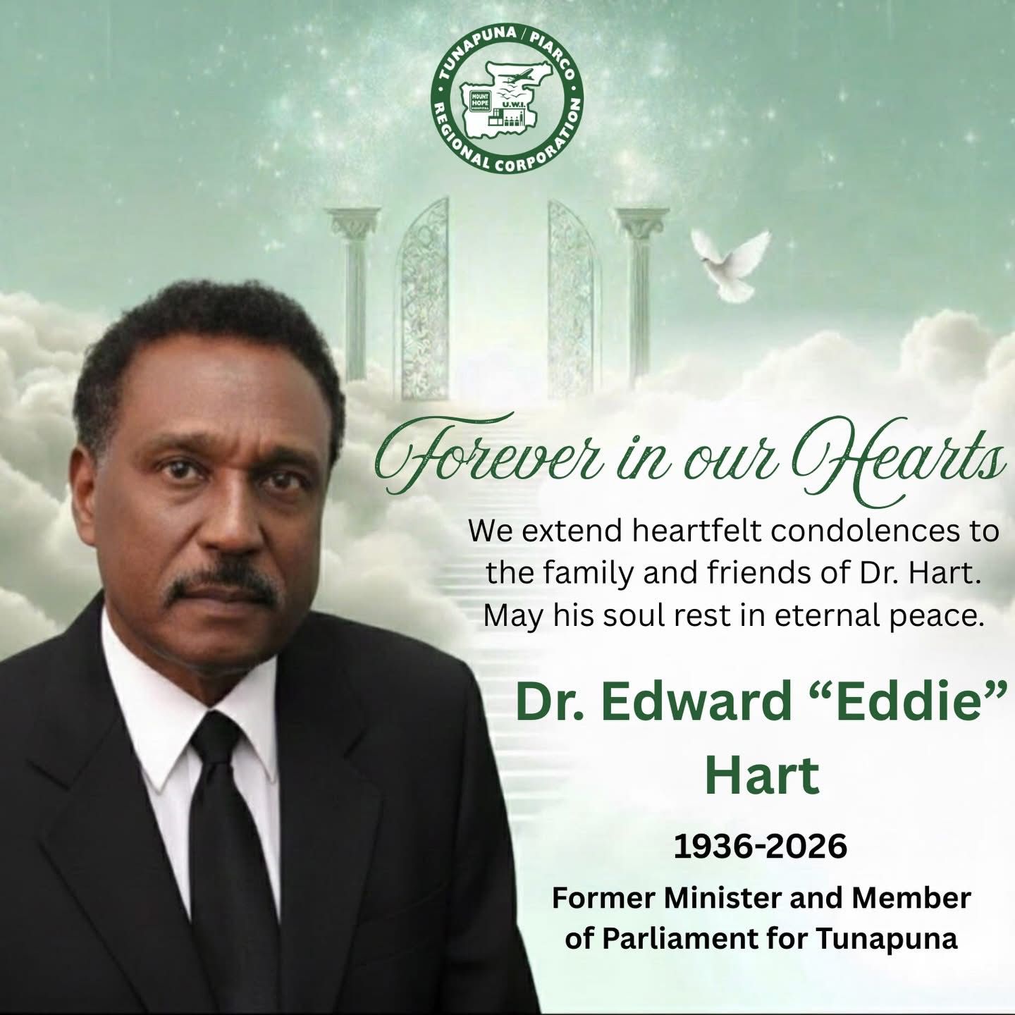 Eddie Hart was renowned for his unwavering commitment to grassroots development, particularly in the Tunapuna area, which he represented with passion and integrity. His tireless work and compassionate nature earned him the love and respect of his constituents, making him a beloved figure in the Tacarigua community and across Trinidad and Tobago.