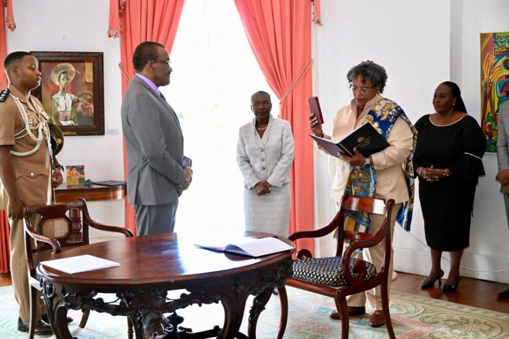 Mia Amor Mottley was sworn in on Thursday for a third term as Prime Minister of Barbados following a landslide victory in the country’s general election.