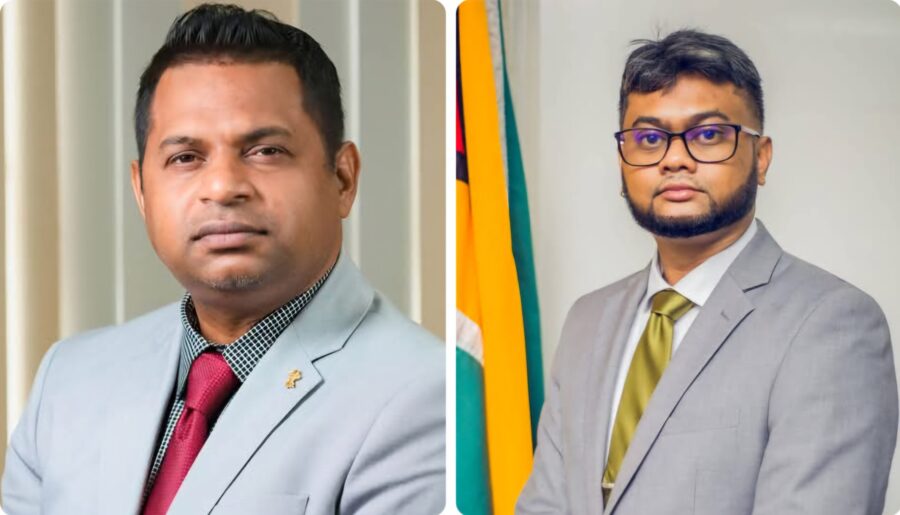 L-R Minister Deodat Indar and former Mayor Ubraj Narine