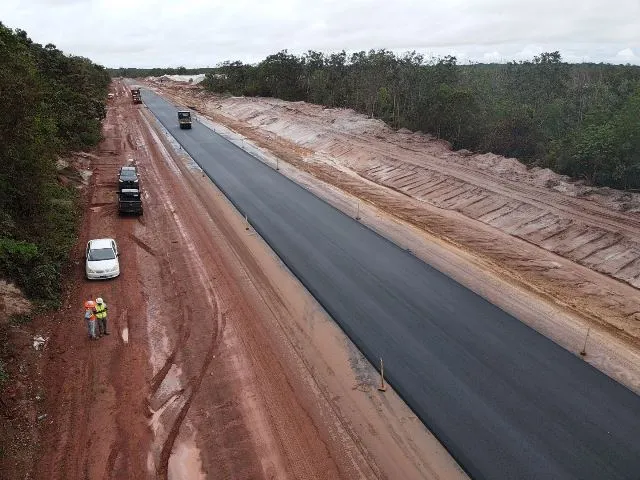 Current works on the Linden–Mabura upgrade show steady progress. Approximately 85 kilometres of the final asphalt surface have been completed, while contractor Álya Construtora has also laid about 88 kilometres of asphaltic binder course. Clearing activities along the alignment are finished and road surface works continue to accelerate.