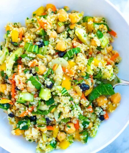 • For a vegan friendly quinoa salad, substitute the honey with maple syrup.