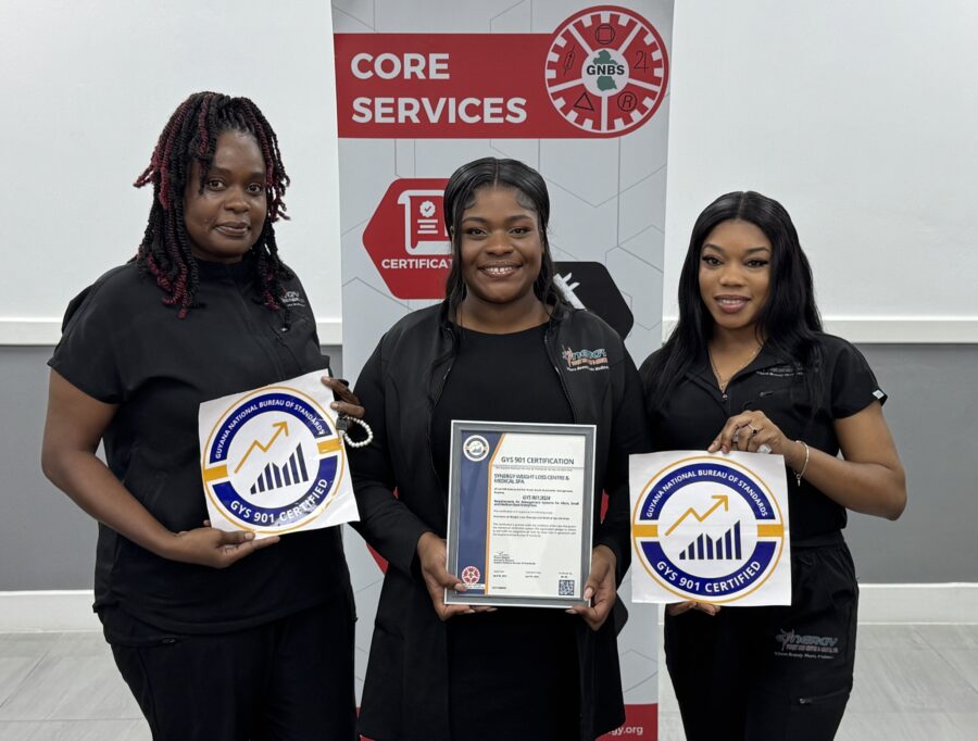 The Guyana National Bureau of Standards (GNBS) has announced that Synergy Weight Loss Centre & Medical Spa is among nine businesses certified so far this year under the GYS 901 Quality Management System Standard, a national framework designed to support Micro, Small and Medium-Sized Enterprises (MSMEs).